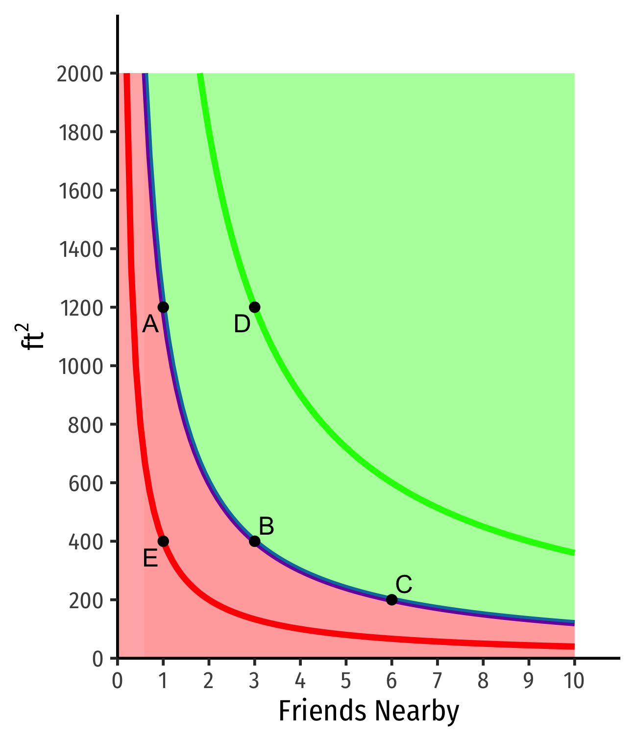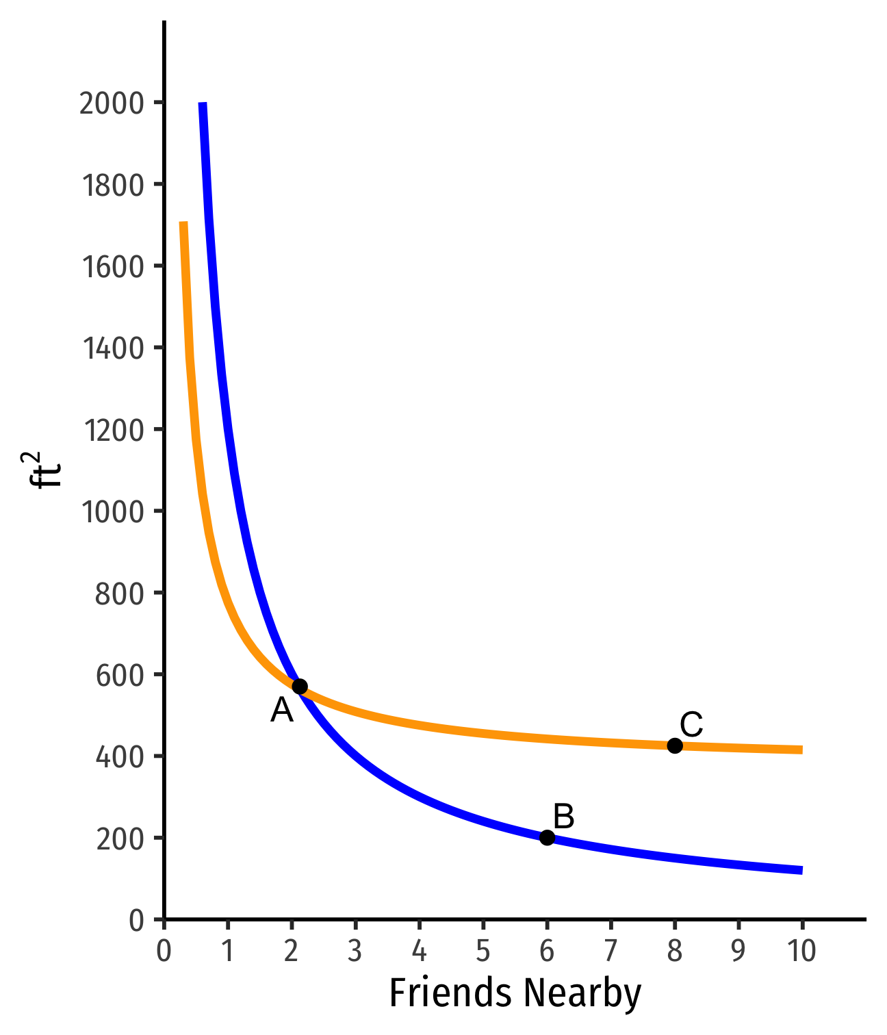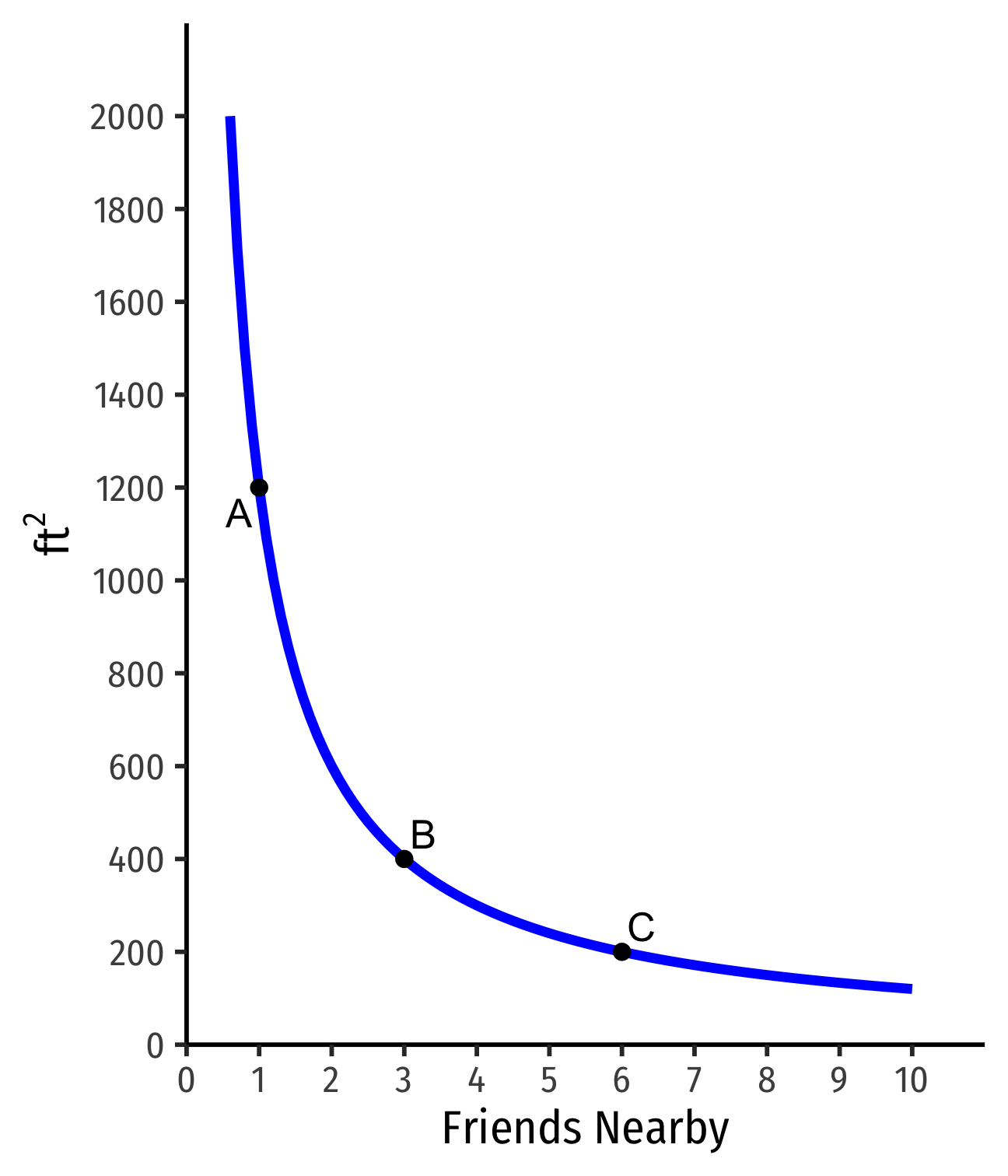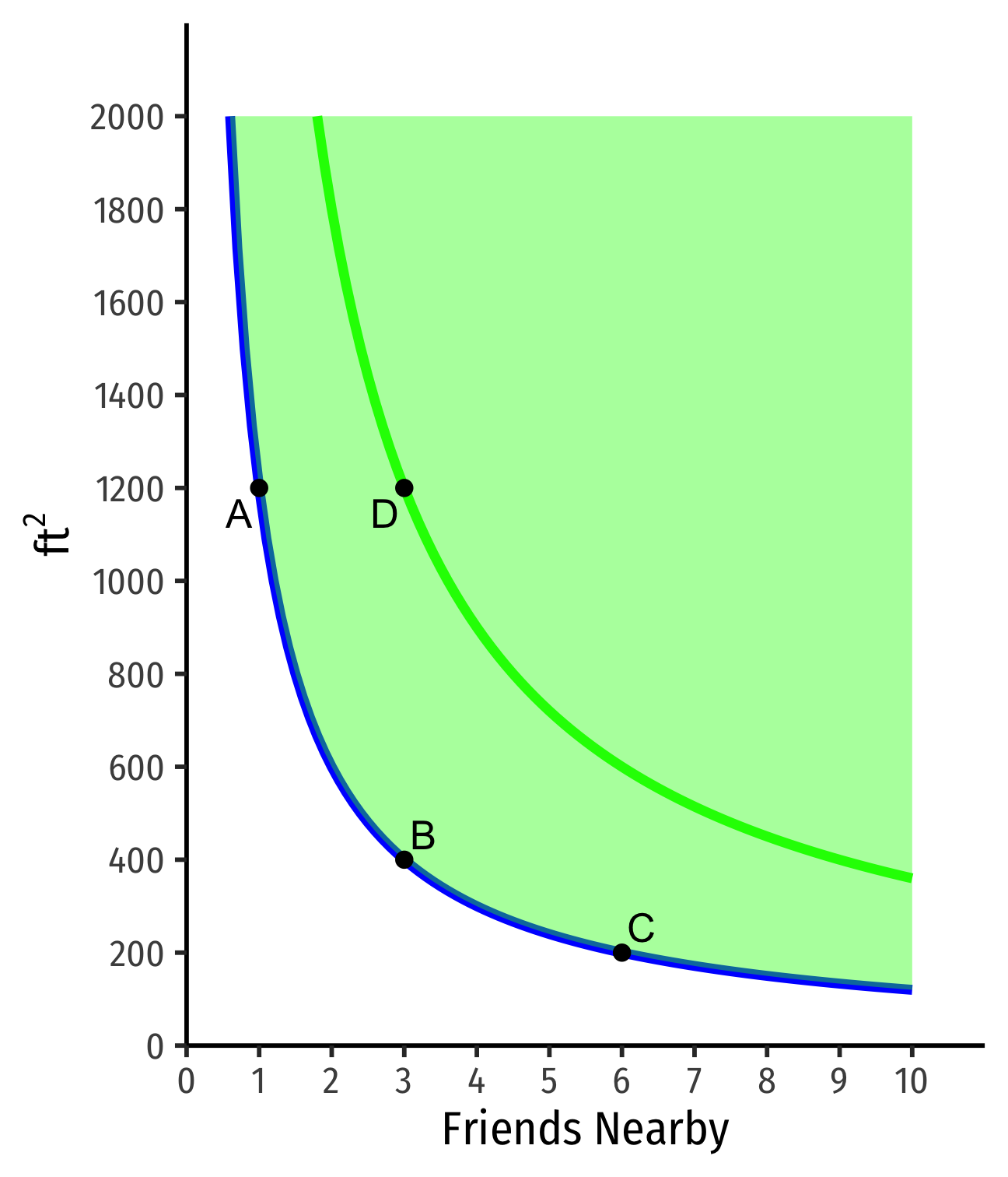 If I find another apt with 1 fewer friend nearby, how many more ft2ft2 would you need to keep you satisfied?