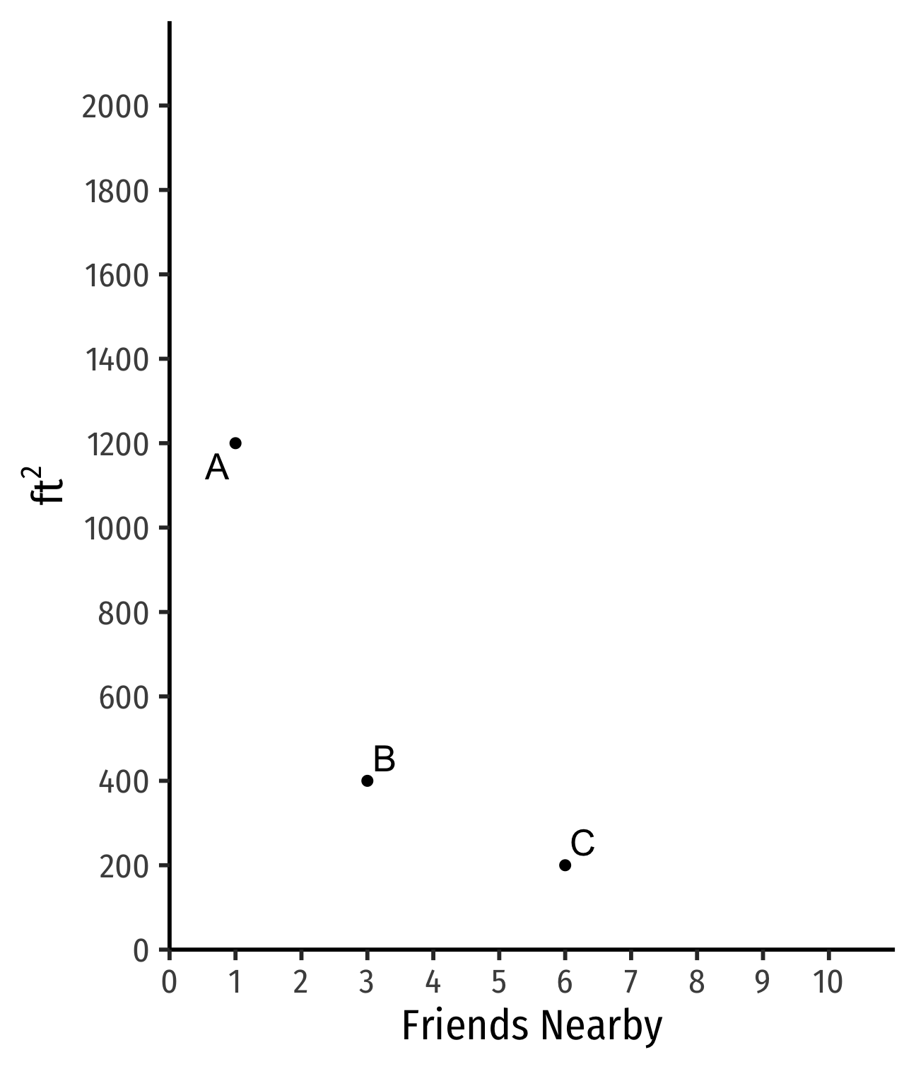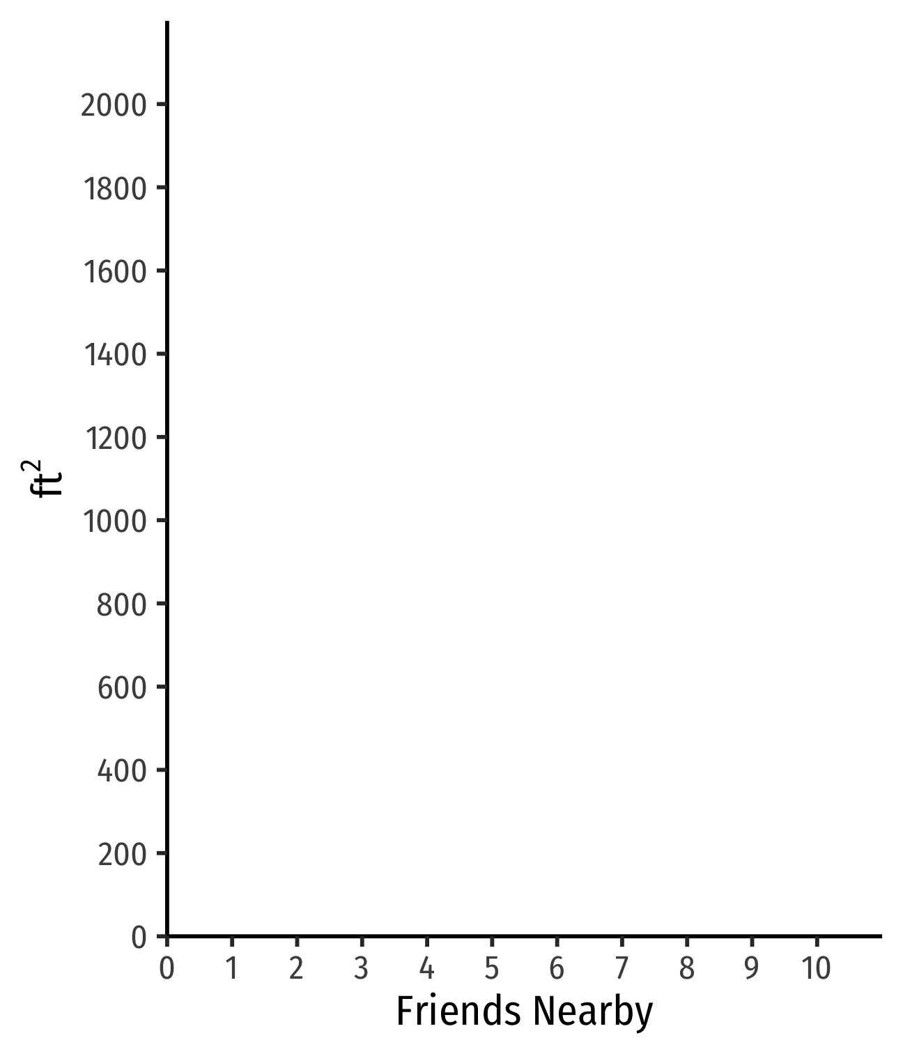 If I find another apt with 1 fewer friend nearby, how many more ft2 would you need to keep you satisfied?