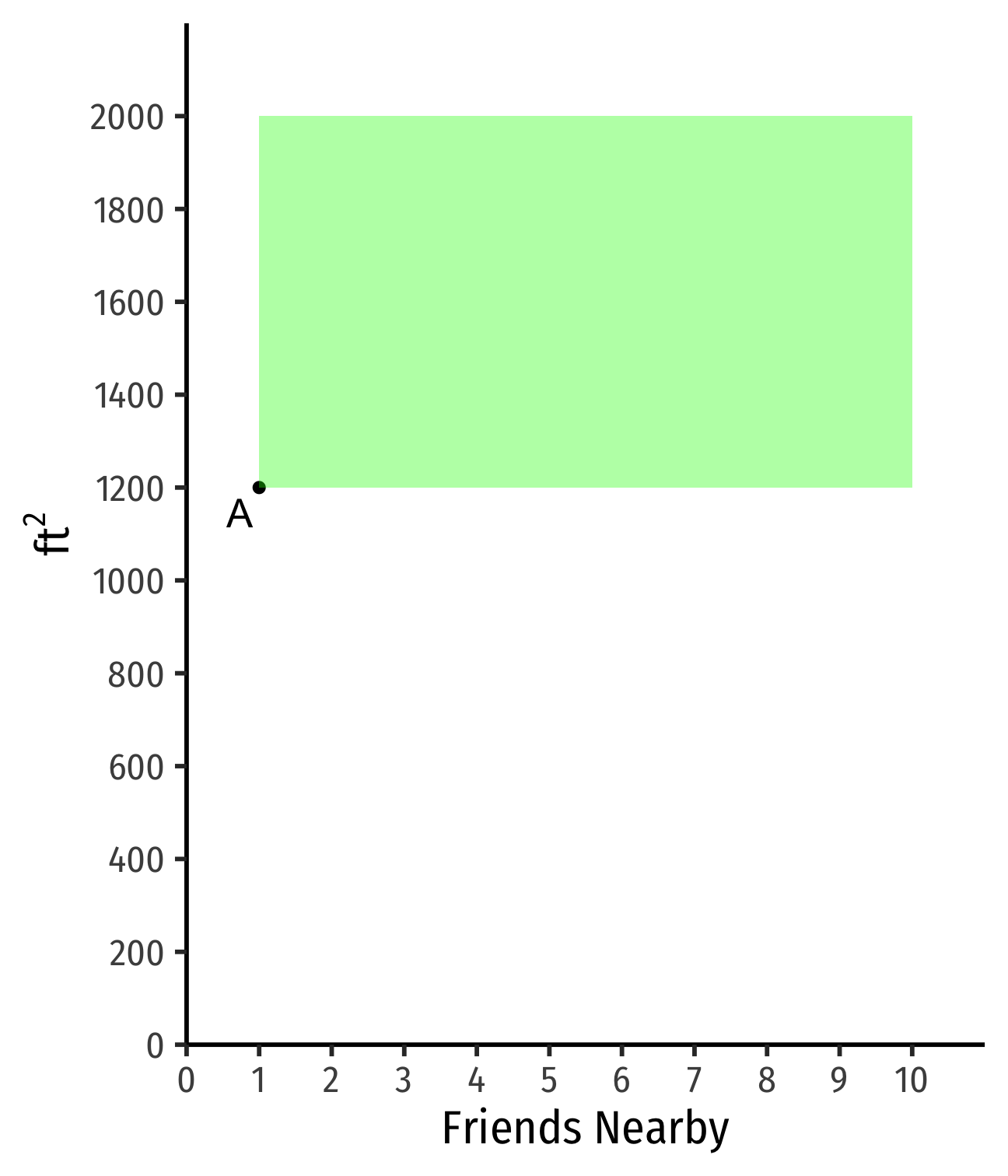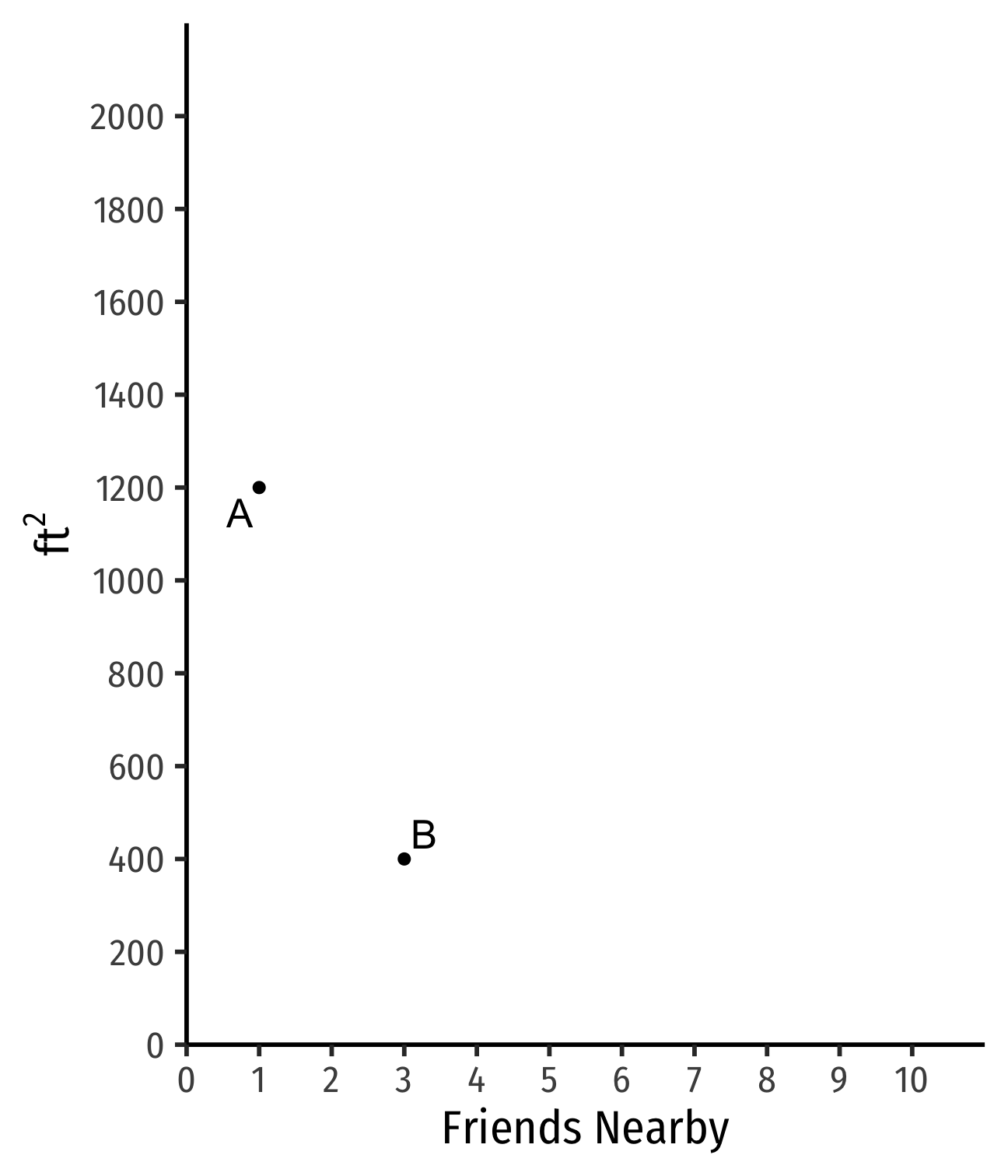 Example: Suppose you are hunting for an apartment. You value both the size of the apartment and the number of friends that live nearby.