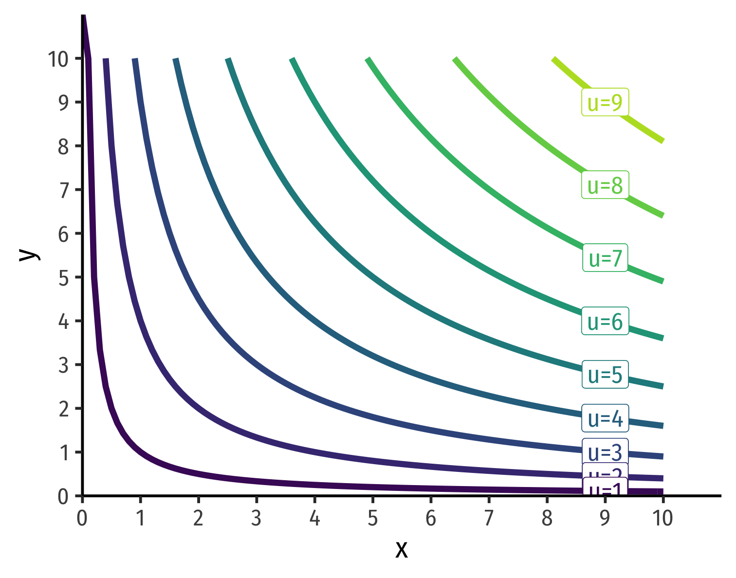 Marginal utility of yy: MUy=Δu(x,y)ΔyMUy=Δu(x,y)Δy