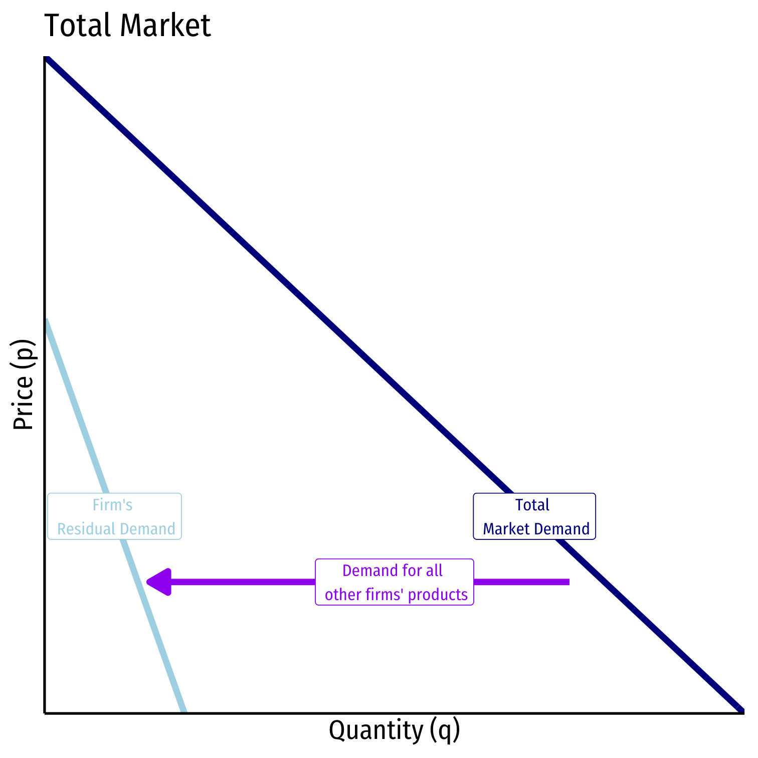 Each firm faces own downward-sloping “residual” demand for each firm’s products