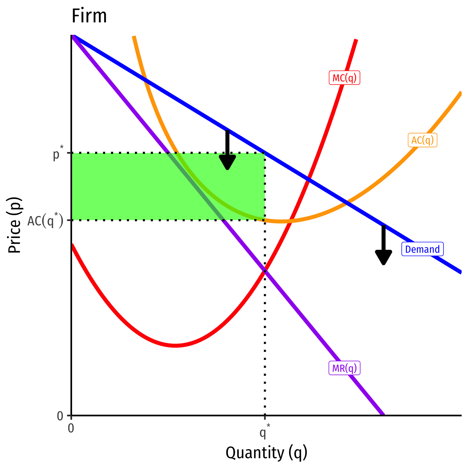 Monopolistic competition: each firm has some market power, but, the industry has free entry and exit (no barriers to entry)
